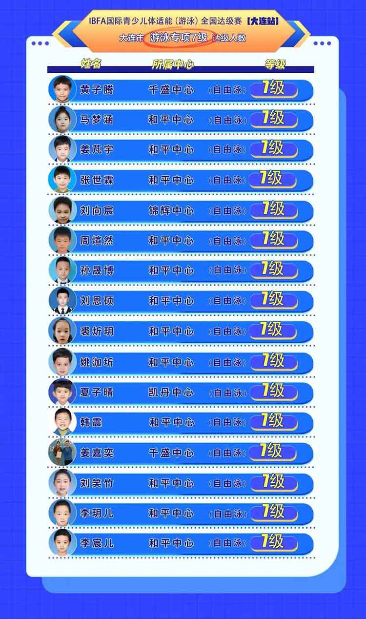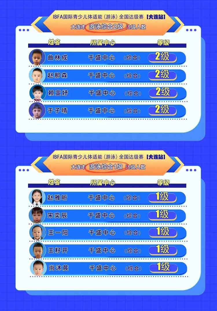 考级成绩|IBFA国际青少儿体适能(游泳)全国达级赛·大连站