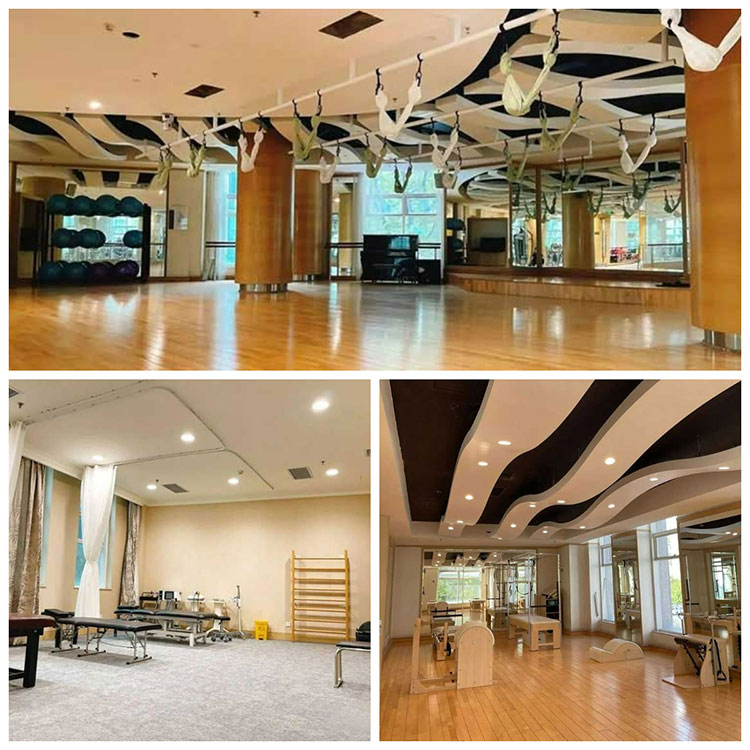 场馆独栋四层,地下一层有地下停车场、游泳池、更衣室、淋浴区、汗蒸房;一楼有营养餐、休息区、儿童活动室、咖啡吧、购物区等;二楼有有氧训练区、高尔夫球室、花式台球、动感单车、各种舞蹈课程、理疗区、滑轮器械、自由重量器械、器械普拉提、高温瑜伽室、VIP健身区、乒乓球室等等;三楼球类训练区,有羽毛球、乒乓球场等。